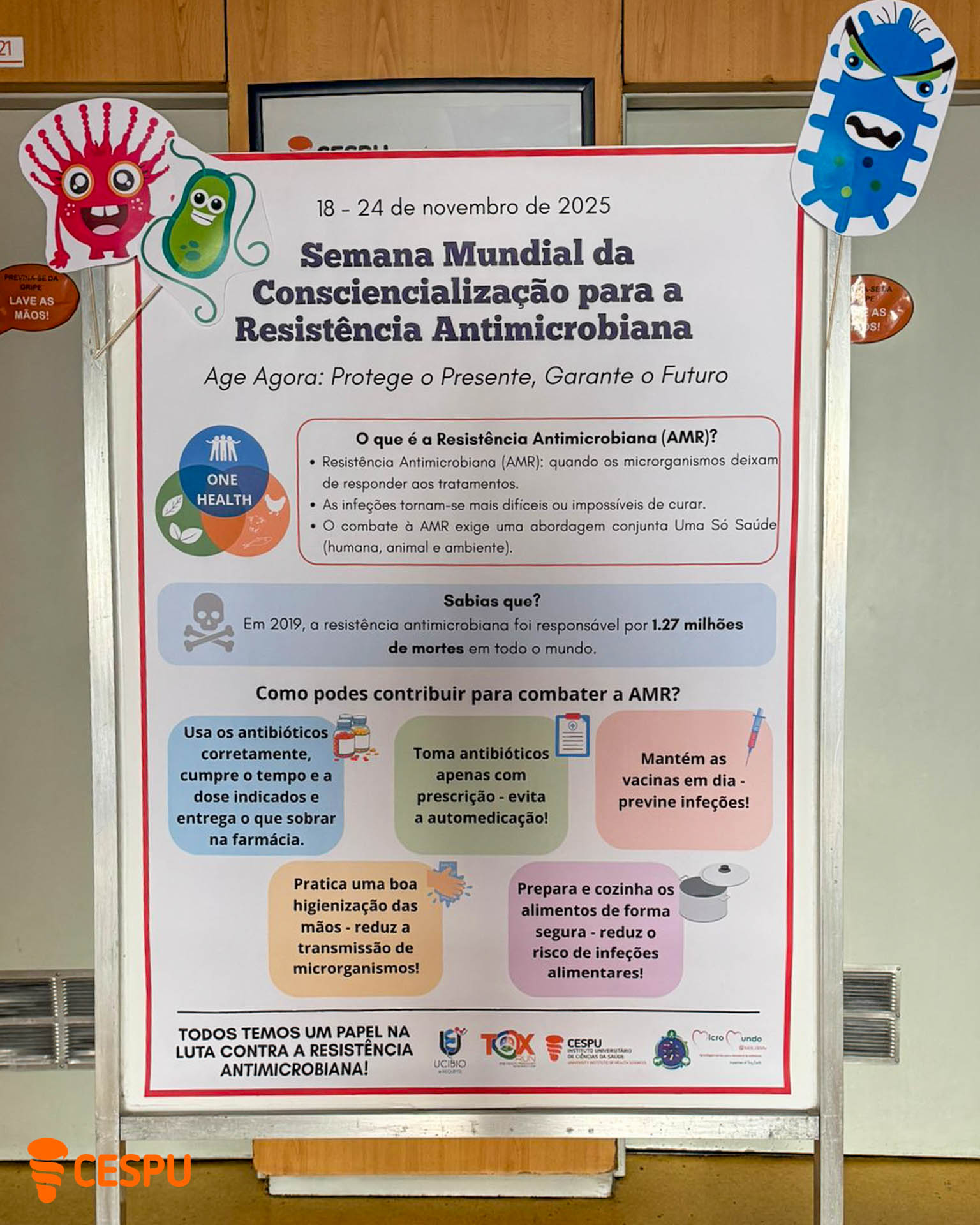 De 18 a 24 de novembro, celebra-se a Semana Mundial de Consciencialização sobre a Resistência Antimicrobiana, uma campanha global para o uso responsável de antibióticos e combate à resistência antimicrobiana. Este ano, sob o lema “Age Agora: Protege o Presente, Garante o Futuro”, o IUCS-cespu associou-se à iniciativa com a 4.ª edição do projeto MicroMundo.